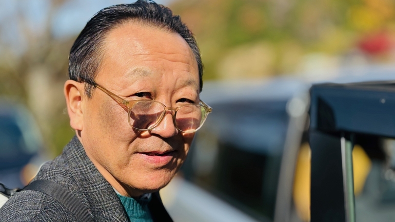 キャストの藤原さんと助っ人さんが撮影してくれた、ロケ場所の紅葉と出演者の写真です。