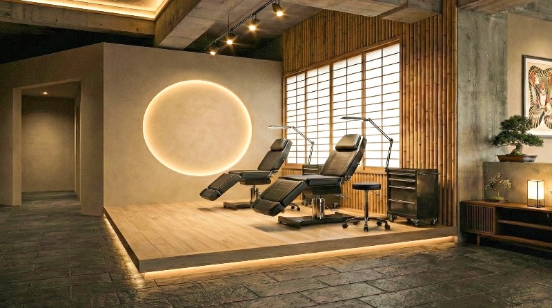 「上質で優雅な体験」を物理的にも保証するために、施術環境を一新します。 長時間身体を預けても負担の少ない、最高級のタトゥーチェアの導入。衛生管理はもちろんのこと、お客様がリラックスして心を開けるカウンセリングスペースの設置。 「痛い・怖い・狭い」というタトゥースタジオの既成概念を壊し、ホテルのラウンジや美術館にいるような、心地よい緊張感と安心感が同居する場所を作ります。