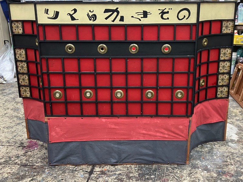 原作にはありませんが、ヒロイン立花美里の内面を描く手段として登場します。これは大正~昭和の見せ物です。電灯を使ったでっかい紙芝居のようなものです。これを再現して頂きますのは、映画美術として有名な嵩村裕司氏率いる、京都芸術大学の映画美術研究会の通称「えびけん!」の皆様です。