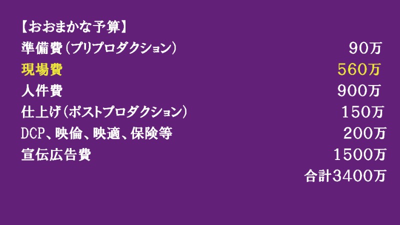 下図は目標金額です。前回より規模が大きいのは、安全に撮影する配慮もあります。ご理解いただけると幸いです。