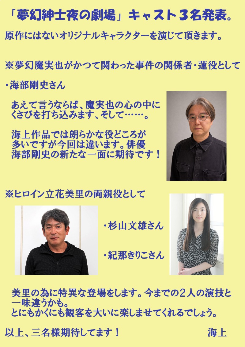 昭和初期の帝都東京を舞台に、黒⾐のトリックスター 夢幻魔実也が活躍する怪奇ミステリマンガ「夢幻紳⼠」シリーズ⻑編映画第⼆弾。「夢幻紳⼠ 夜の劇場」の製作のご支援をお願いします。