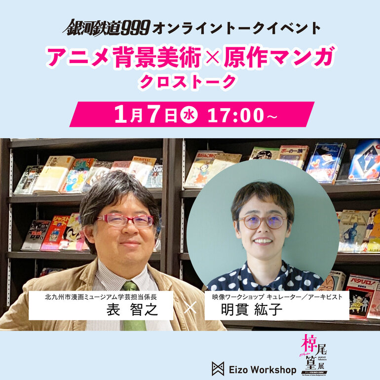 現在北九州市漫画ミュージアム(福岡)で開催中の、 銀河鉄道999 50周年プロジェクト「松本零士展 創作の旅路」。その監修者であり同館学芸担当係長の表智之さんをゲストにお迎えし、原作マンガとアニメ背景美術のクロストークを行います。