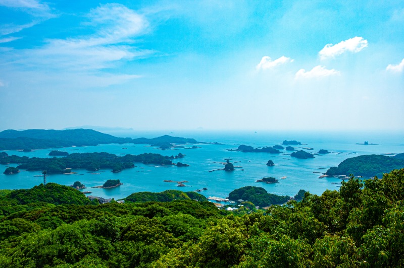 ここからの眺めは、海に浮かぶ島々だけでなく、港と街並みがひとつの風景として広がるのが特徴。佐世保港と生活の気配が感じられる市街地、佐世保らしさを一望できる場所です。