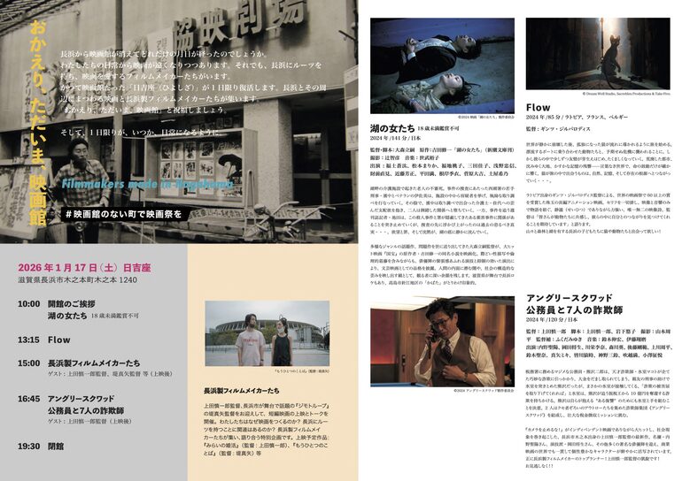 選りすぐりの上映3作品に加え、「長浜製フィルムメイカーたち」も渾身の特別企画です。