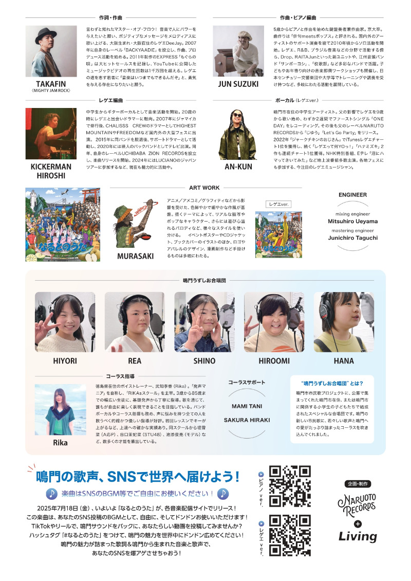 ジャパニーズレゲエ界のマスター・オブ・フロウ、TAKAFIN氏が鳴門の次世代のためのNeo市民歌として書き下ろし作詞・作曲。