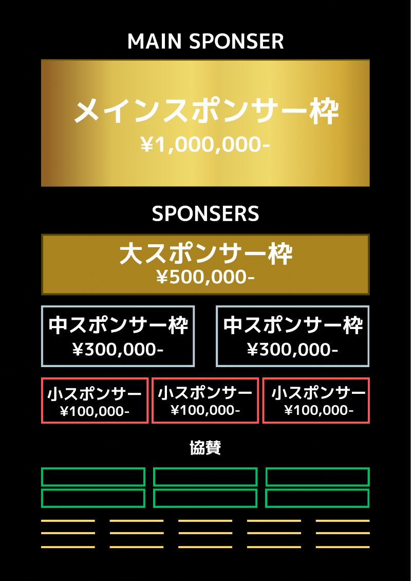 スポンサー枠に続き、協賛枠(中・小)の順にて、ご支援いただいた個人・企業・団体様のお名前を作品のエンドロールに掲載いたします。