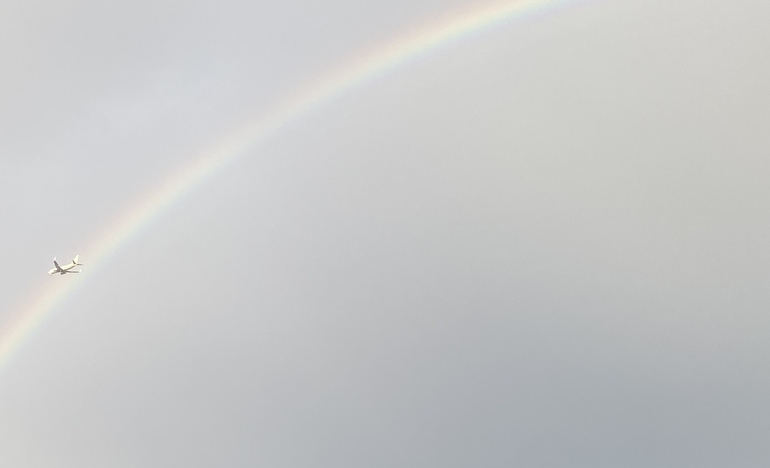 写真は、今ちょうど空にかかった虹です。良いタイミングで虹が見られたので、良いCDが作れるような気がします…