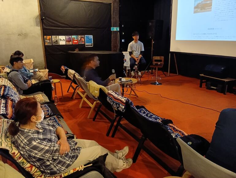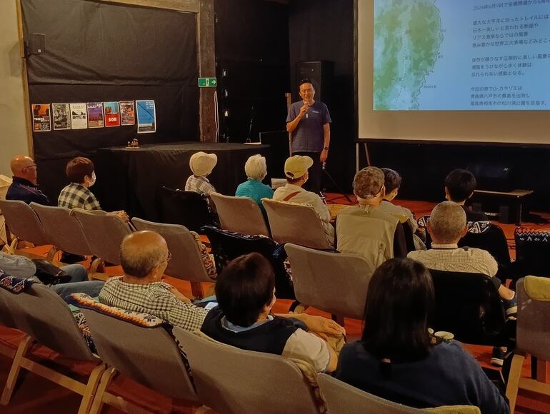 昨日は志賀スポーツの志賀さん、本日はふじたファミリークリニックの藤田先生、浄土ヶ浜ビジターセンターの佐々木さんにご登壇いただき、主人公の垣添先生のお話しやトレイルの楽しみ方についてのお話しをいただき、より作品を深められました。参加者(ほぼ全員)からの感想共有も盛り上がりました。