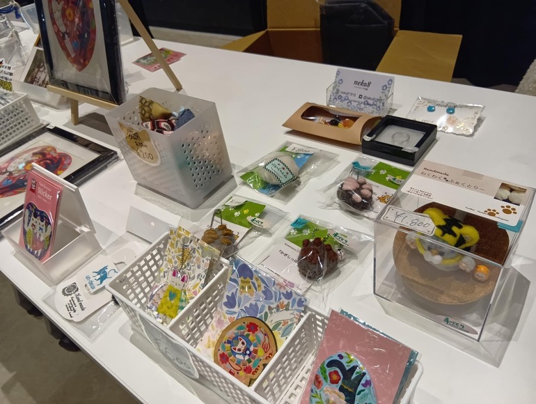 保護猫団体アンドゥさんの猫グッズ販売や釜石保健所の展示では譲渡情報などの情報もありました。