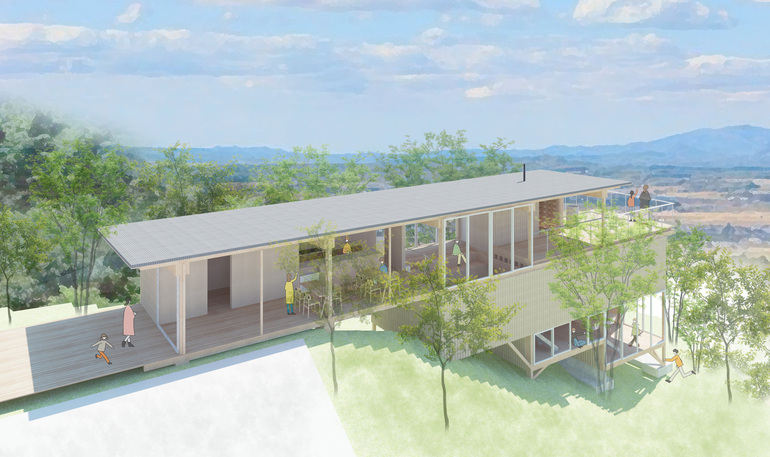 滋賀の自然豊かな斜面地にカフェとサウナを併設するシェアオフィスが2023年8月オープンします。