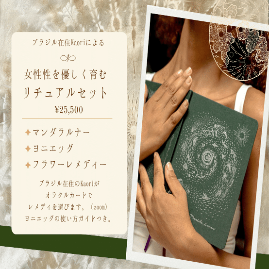 これはものだけが届き、一人でエッグや子宮と向き合うためのセット。使い方のガイドもつくから、問題なく一人でできると思います。こちらは子宮と会話しまくった上級者向けかもしれない。