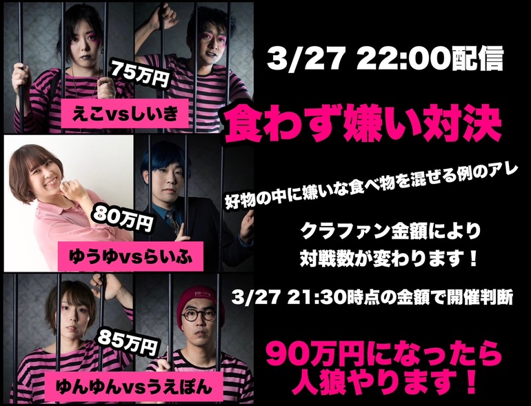 4/1 23:59までに110万円達成でフルメンバーでの開催となります。