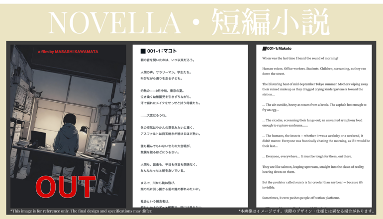 世界が混乱し、不安と孤独が広がるなかで、人々は「映画」に娯楽以上のものを求めています。それは、逃げ場であり、希望であり、光です。 『OUT』が、誰かにとっての「光」となれるよう、心を込めて完成させたいと思っています。この映画に共鳴してくださった皆さまにも、ぜひこの物語の「仲間」になっていただけたら嬉しいです。
