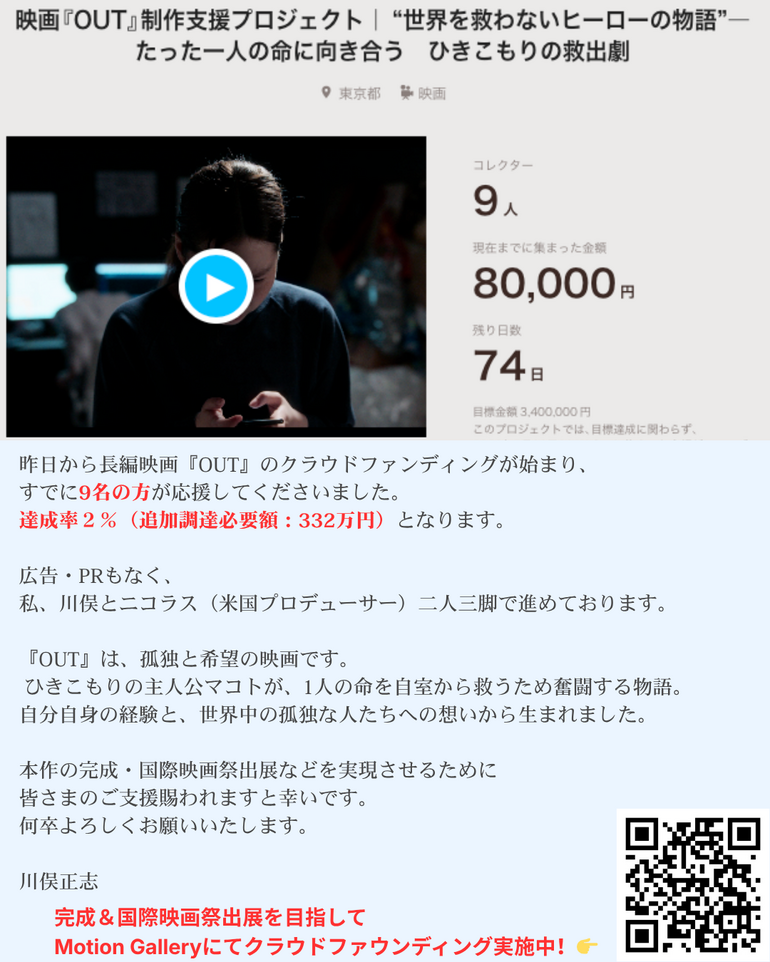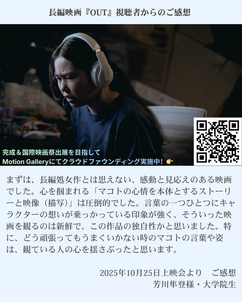 映画『OUT』制作支援プロジェクトをクラウドファンディングで実現!