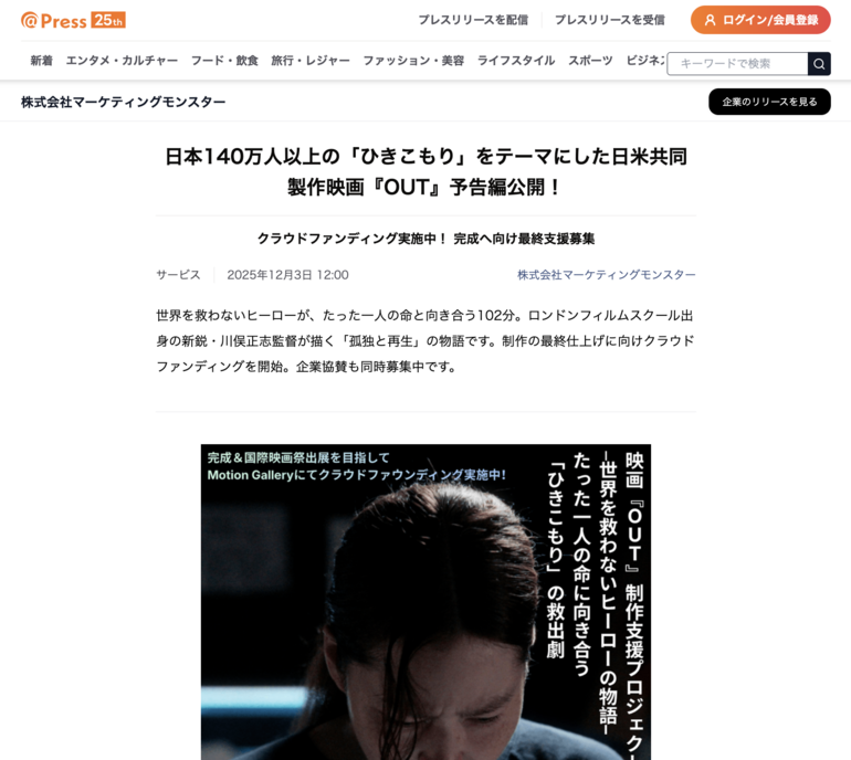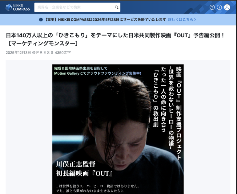 昨日、長編映画『OUT』のプレスリリースが公開されました!
