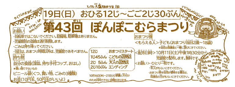 来週10/19(日)は、いよいよ年に一度のぽんぽこむらまつり!