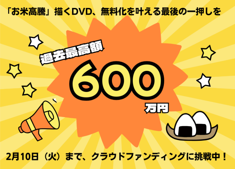 更なる追加目標である600万円を達成できた場合、より多くの方に本作品を届けるため、DVDの本体価格を「無料」に致します。 個人での視聴が手軽になることはもちろん、地域団体や学生による企画など、予算の限られる主体による上映会のハードルを大きく下げることができます。情報の障壁を取り払い、農と食の未来を共に創る仲間を劇的に増やしていきたいと考えています。