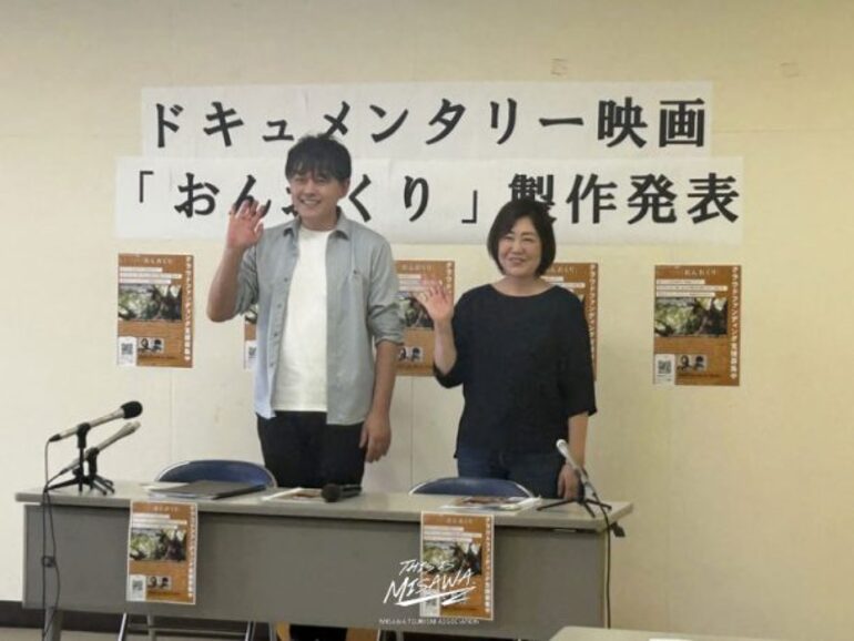 「もう一つの『おんおくり』」の制作発表を、今回歌を贈り届ける山本雅也さんの故郷であり、このドキュメンタリーのスタート地点でもある青森県三沢市で行ないました。発表会には、山本雅也さんの他、プロデューサーの堀が出席し、制作にいたる経緯や伝えていきたいことをお話させていただきました。地元テレビ局で放送され、Yahoo!ニュースでも取りあげていただきました。リンクを掲載させていただきましたので、実際のニュース映像もご覧いただけます。
