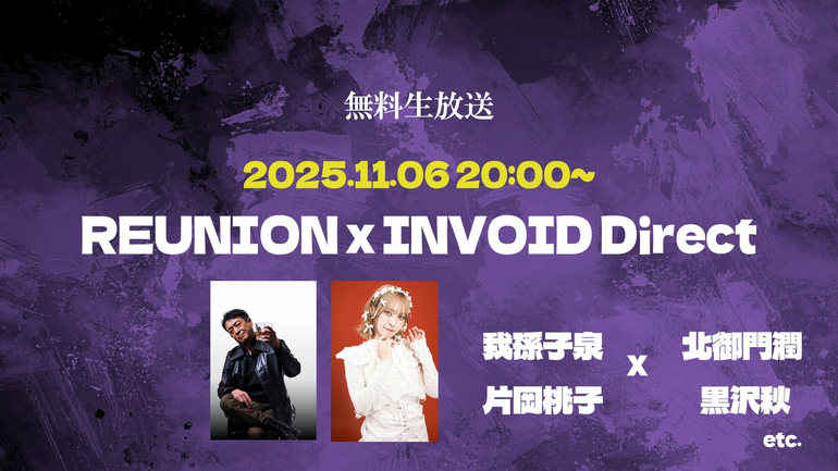 来週木曜20時~ 黒沢監督とYoutube生配信します! 「REUNION×INVOID Direct」お楽しみに!