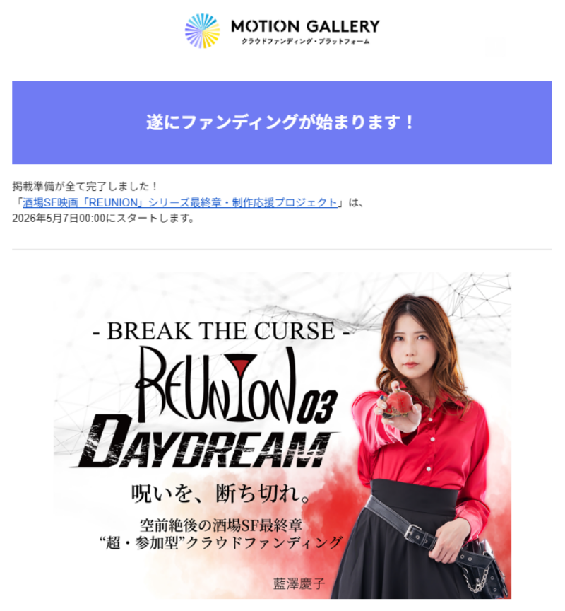 「酒場SF映画「REUNION」シリーズ最終章・制作応援プロジェクト」は、