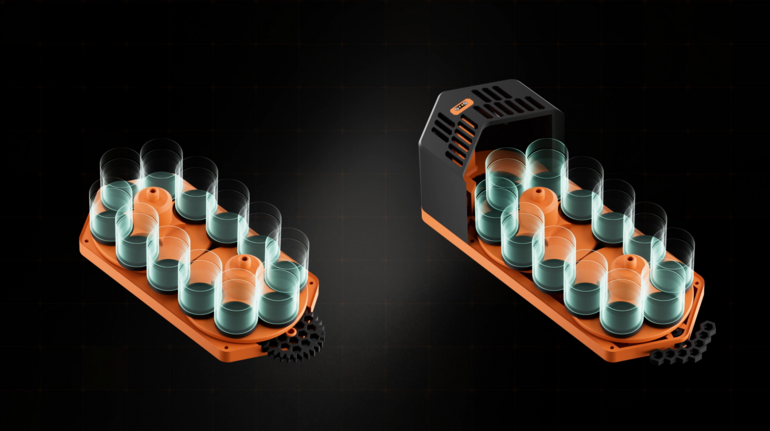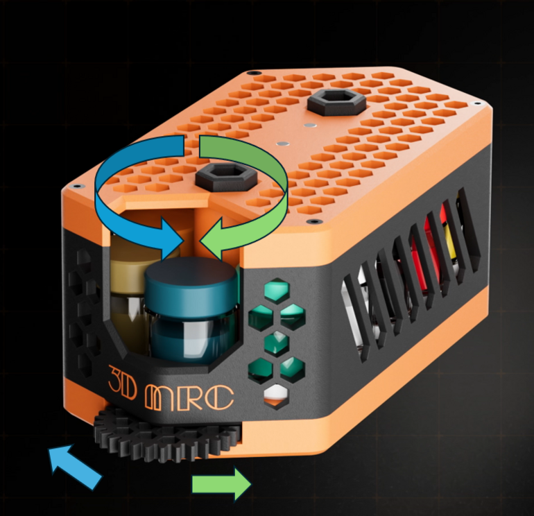 3Dプリントによるモジュール構造を採用し、使用者の作業環境や塗料本数に応じて構成を拡張できる点を特徴としています。