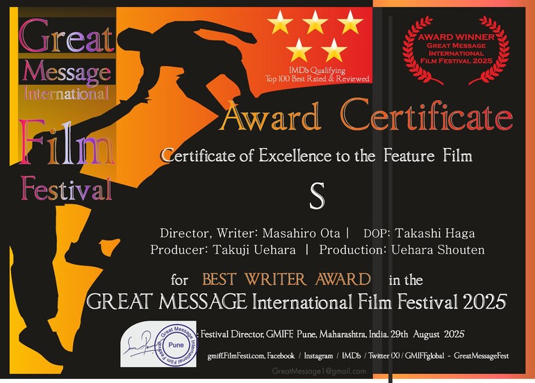 にて最優秀脚本家賞を受賞しました。既に映画祭は終了、現地上映は他部門ノミネート作品たちのみだったのですが、脚本家として賞をいただき、大変光栄に思っております。