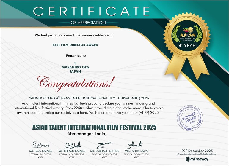 アジアン・タレント国際映画祭(Asian Talent International Film Festival/インド)では、松下倖子さんが最優秀女優賞、私が最優秀監督賞、作品が外国語映画最優秀長編映画賞をいただきました。