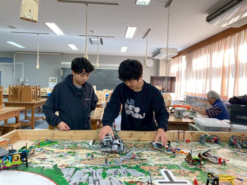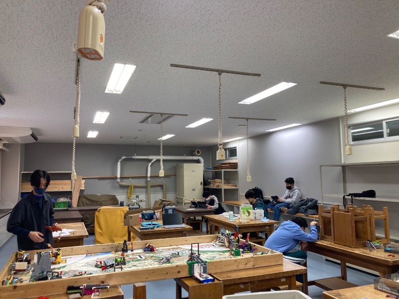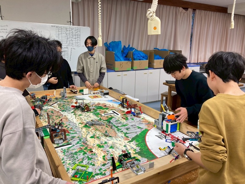 ロボットゲーム:LEGOのロボット(EV3マインドストームもしくはSPIKE)を使って制作、プログラミングしたロボットで複数のミッションのクリアを目指す。2分30秒の間にどれだけのミッションをクリア出来るかで得点を競う。