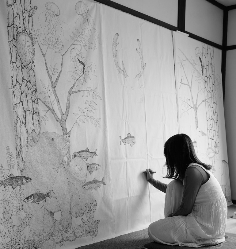平成12年(2000年)生まれの25歳です。生き物を見ること、描くことが大好きで私の作品には動物や植物が数多く登場します。