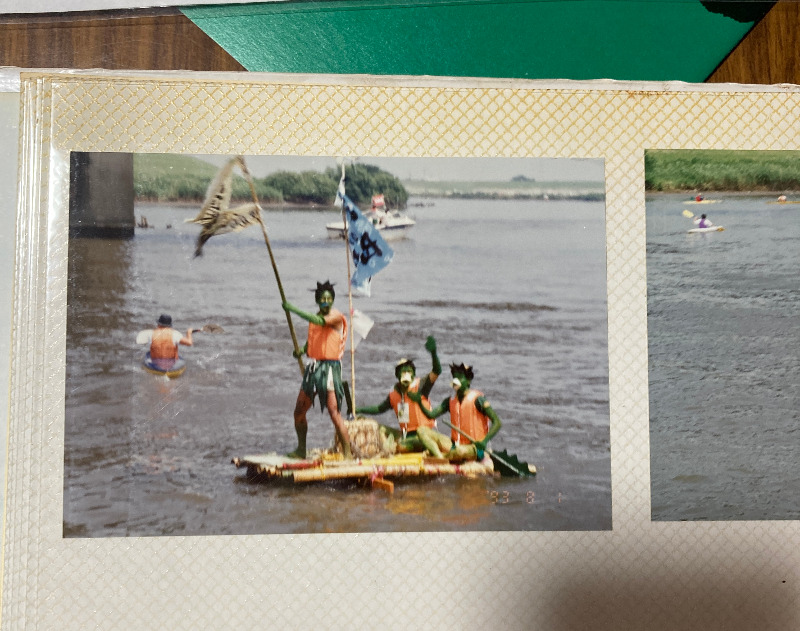 松戸市制施行50周年の際に実施された松戸市青年会議所主催「夏フェスタ・江戸川手作りイカダ下り」の様子。