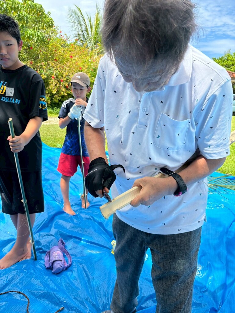 子供たちが帰った後、ノージさんから、「西表島の子供達のために弓矢作りを教えてくれてありがとう。子供たちにとって、夏休みのいい思い出になるだろうね」と言われたことも嬉しかった。
