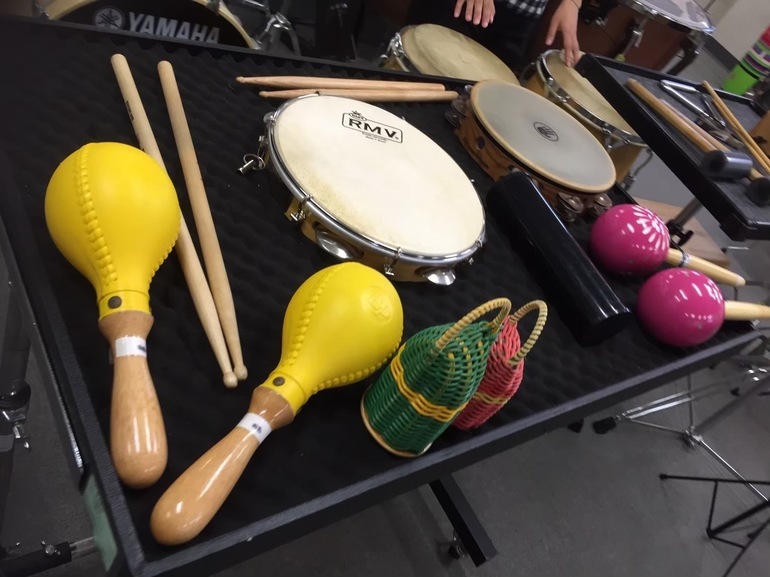 今回の大会や演奏会で使用する打楽器は、大きさも様々で、片手で持てるような小さい楽器から、大勢で運ばないといけない大きな楽器や解体しないと運べない大きな楽器もあります。