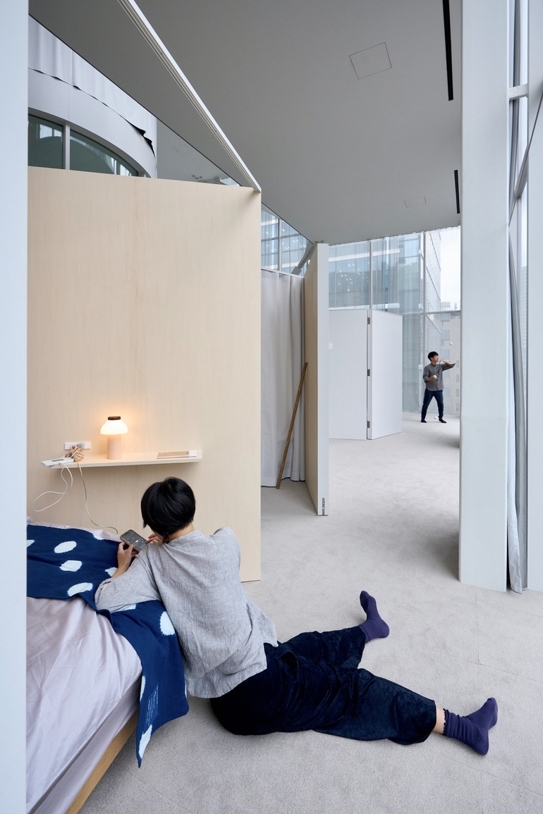 完成したばかりの「ゲストルーム」。妹島さんらしいユニークで美しい空間に仕上がりました ( model: Kaho Kogure, Yosuke Meguro )