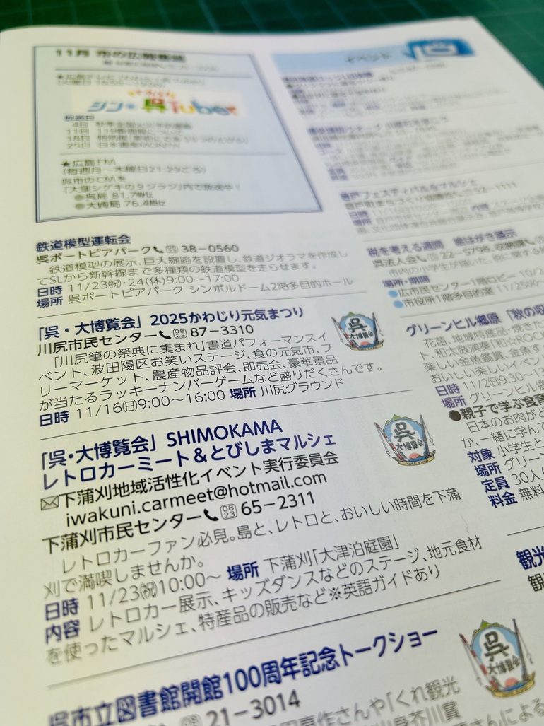 10月に引き続き、市政だより くれ11月号にも掲載されました!