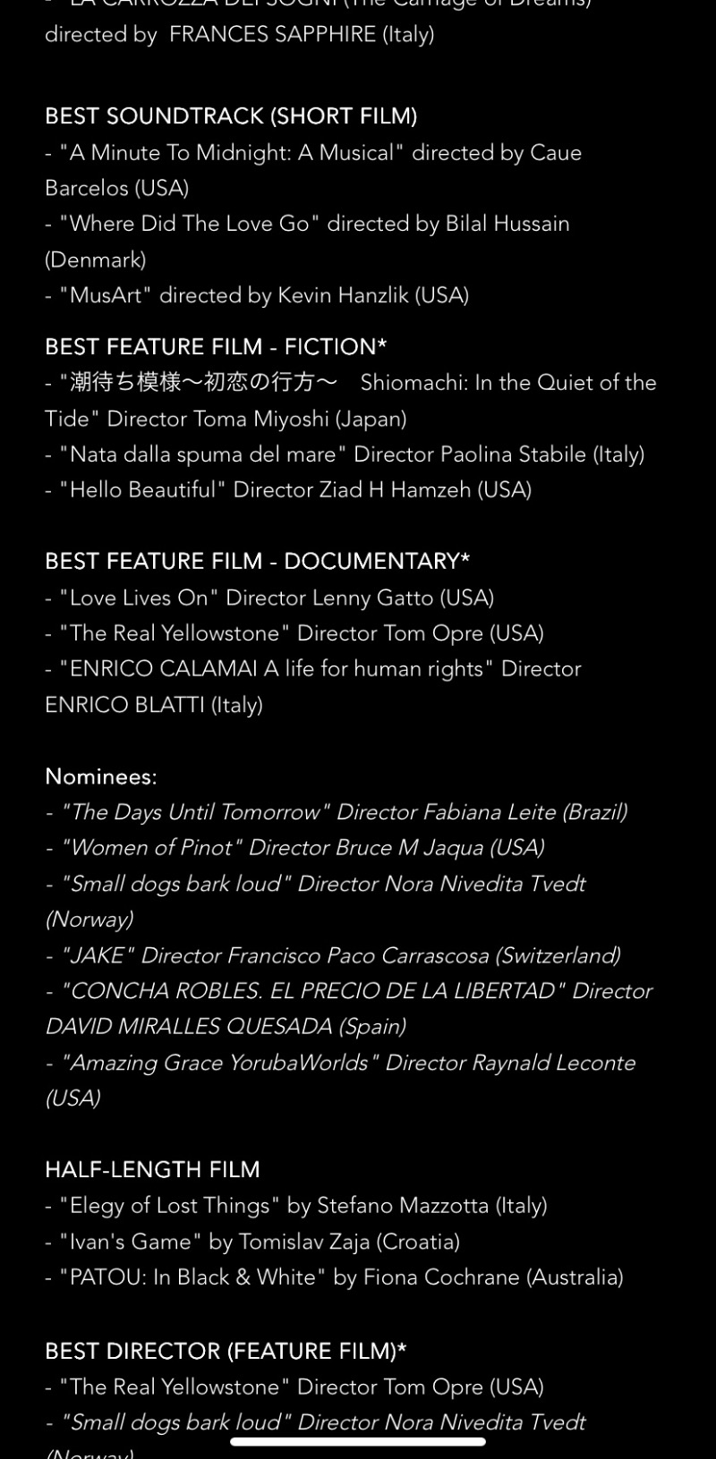 引き続き他の映画祭での受賞がありましたらご報告させて頂きます。
