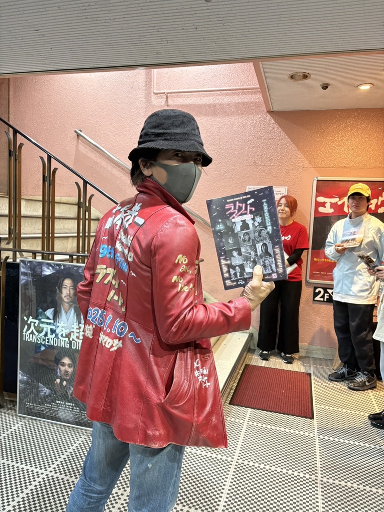 この革ジャンはアピールのために作ったのですが、普通のファッションとみなされていて、監督と書いてあることになかなか気づいてもらえないのが悩みのようです。