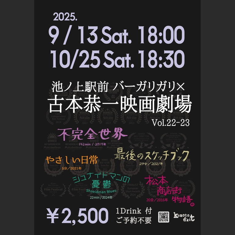 古本恭一監督と中沢志保監督の短編2本ずつ、計4本を上映するというバー上映です。