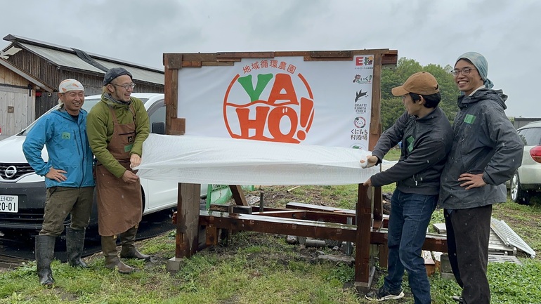 今日は雨のなか、谷保地域にある新しい体験型農園「地域循環農園 やっほー!」の除幕式を行いました。