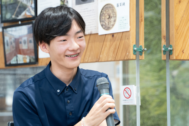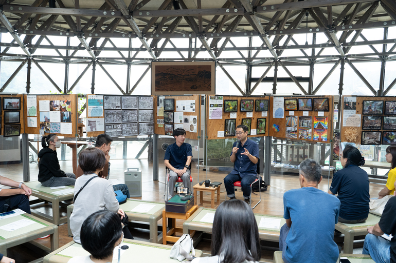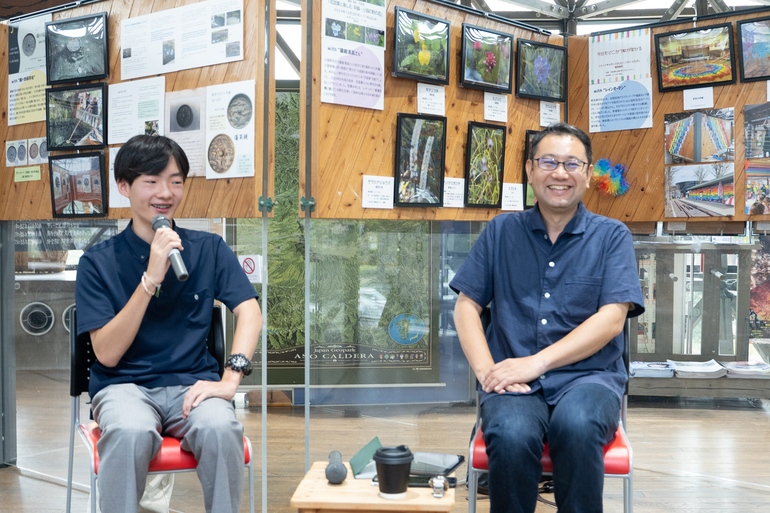町のランドマークである「道の駅」小国 ゆうステーションにて、本芸術祭のリサーチャーの一人、文化人類学者の松村圭一郎と小国高校2年生の川谷唯心さんが、「聞き書き」を通して出会った物語を振り返りました。