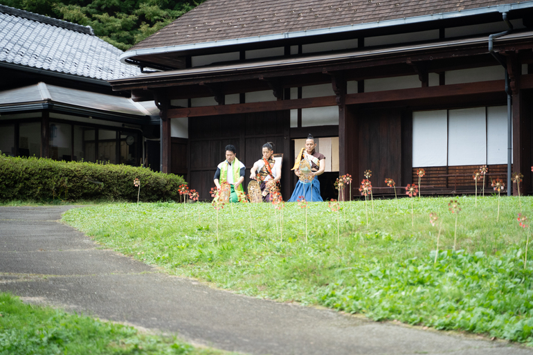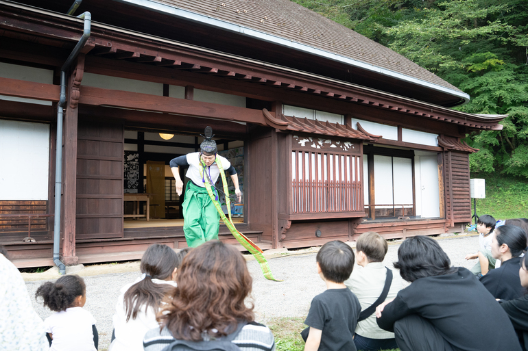 小国町ではこれまで公演だけでなく、子どもたちに向けたワークショップを何度も開催しており、幼少期からずっと「んまつーポス」の活動に参加してきた女の子を観客の中に見つけ、「大きくなったね」と声をかける一幕もありました。またその縁で、会場の片付けを手伝う若者の姿も見られました。 地域に根ざしたアートのあり方を体現する彼らの活動は、地方から発信される新しい文化のかたちを感じさせてくれました。アーティストと坂本善三美術館との長年の関係があってこそ実現した今回のパフォーマンス。 芸術祭のあり方について、改めて考えさせられる時間となりました。