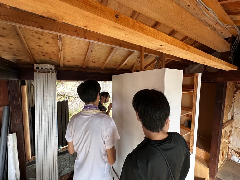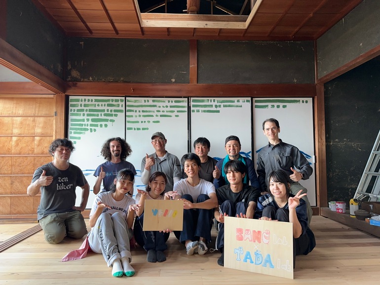 On Sunday morning, Yamachan from Nonaka Komuten Construction joined the effort. In the afternoon, three students from Sano Lab at Kindai University and two students from Tada Lab at Mukogawa Women's University, all working under the on-site guidance of Professor Tada, joined us. Together with three dedicated daiku carpenters from Nonaka Komuten, we pushed the project forward with great energy!