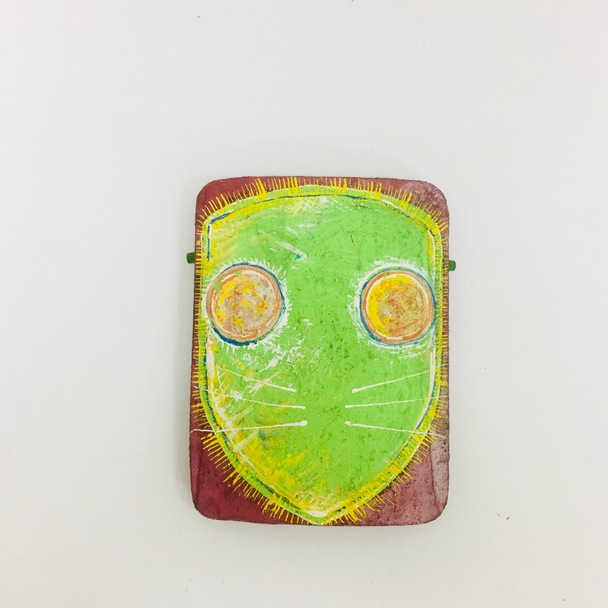 (アッサンブラージュ<段ボールに着色>/ 縦16㎝×横14cm×奥行き0.5㎝)