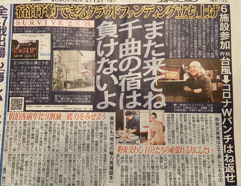本プロジェクトが4/10(火)の長野版スポーツニッポンの裏面1面に掲載いただきました。