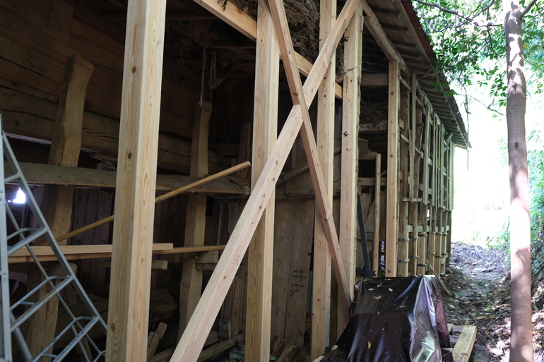 水車小屋は、なんとか仮の補強に目途がつきました。