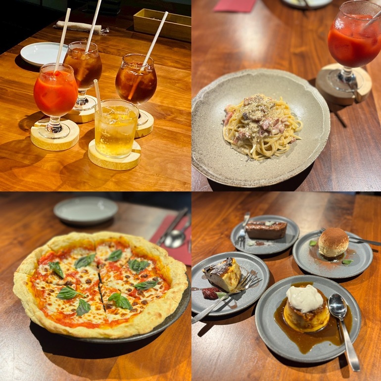 彩り鮮やかなキャロットラペ、濃厚カルボナーラ、窯焼きマルゲリータピザのほか、ジビエを使ったお料理など地元食材を活かしたメニューが充実!