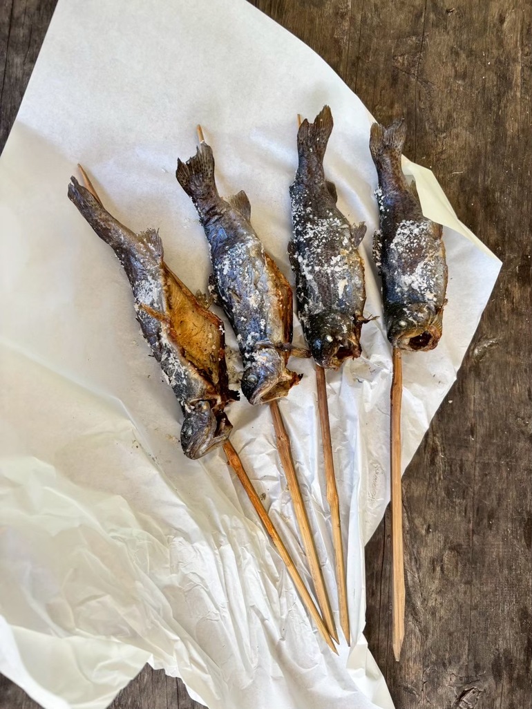 そして最大の魅力は、釣った魚をその場で焼いて食べられること!ふっくらと香ばしく焼き上がったマスは、とにかくここでしか味わえない絶品。