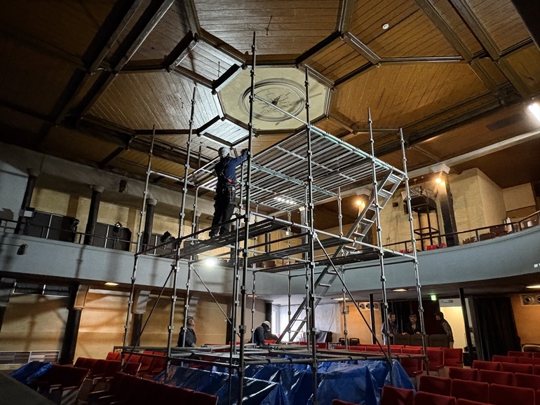 さて、クラウドファンディングのプロジェクトの進捗についてですが、皆様からのご支援を元に、いよいよ今年の春スクリーンの張り替え工事を実施いたします。現在クラウドファンディングとはまた別に内装の工事を実施中ですが、それが終わり次第取り掛かる見込みです。