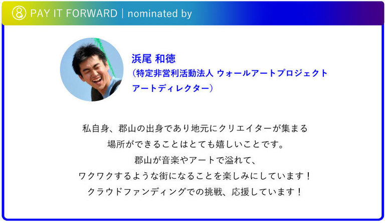 このメッセージを読んでくれているあなたも、このプロジェクトチームのひとりとして、一緒に福島・郡山のカルチャーシーンを盛り上げていきませんか?