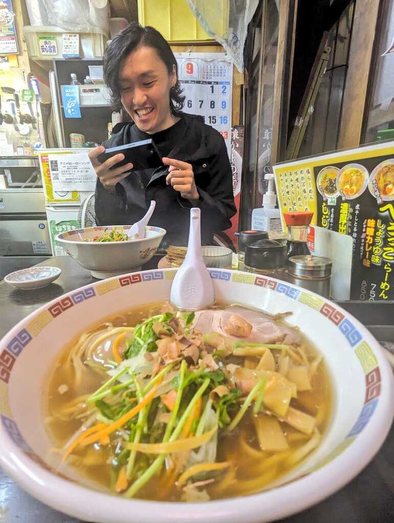 仕事終わりのラーメンにご満悦のアラフォー2人です(笑)