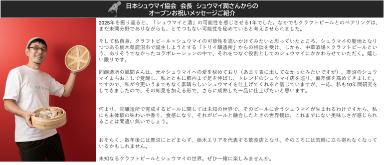 ●日本シュウマイ協会 会長 シュウマイ潤さんからの応援メッセージ